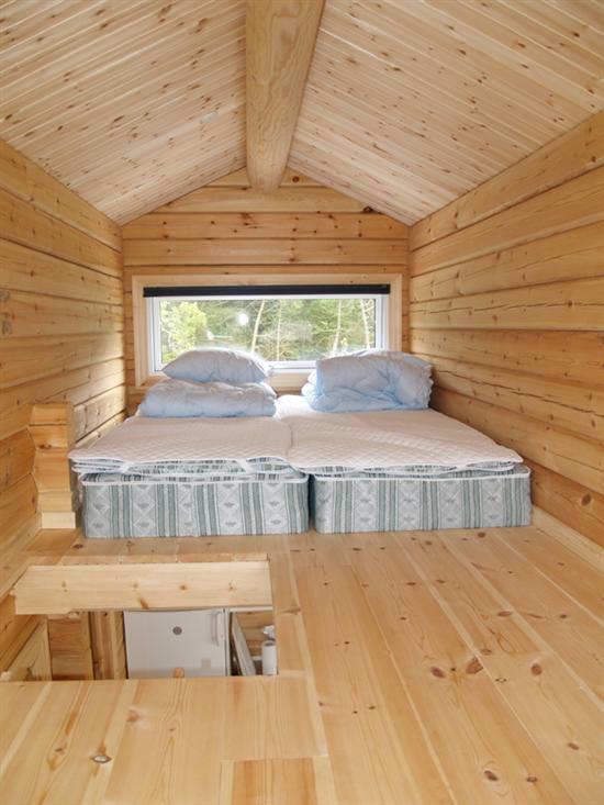 De er indrettet med et komplet udstyret køkken/alrum, soveværelse med dobbeltseng, børneværelse med køjeseng samt en dejlig stor hems med 2 sovepladser. Alle sovepladser har hovedpude og vattæppe. Desuden findes der i hytterne et flot badeværelse med bruseniche.